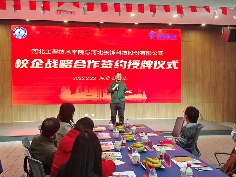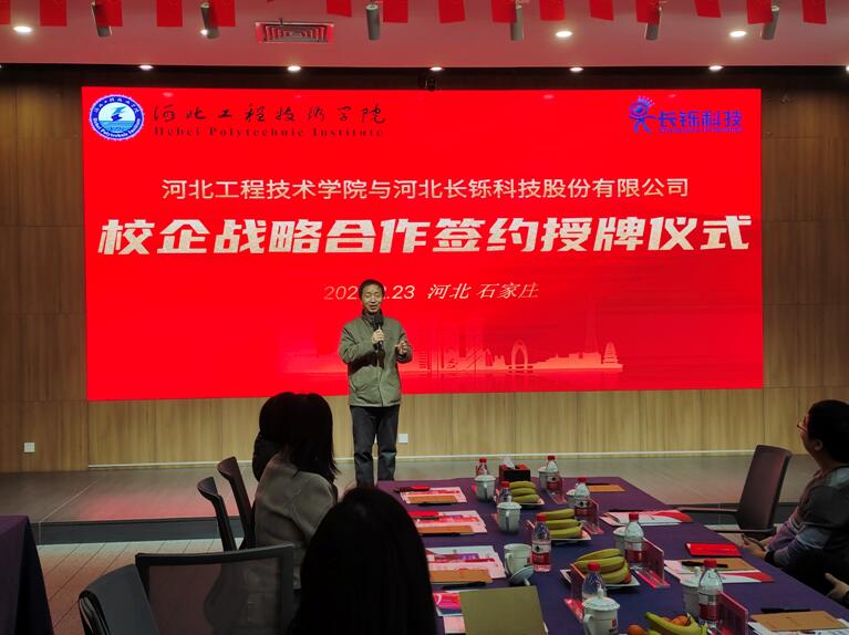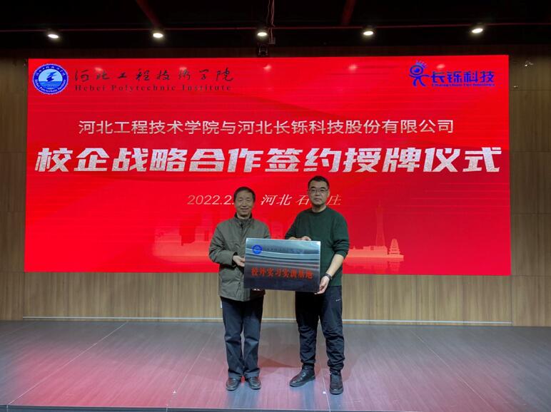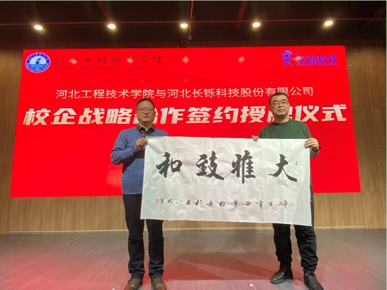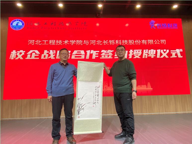 副校长辛彦怀为河北长铄科技股份有限公司颁发了“taptap点点官方网站校外实习实训基地”牌匾,双方互赠文化礼物;签约授牌仪式结束后,双方还举行了产教融合协同育人座谈会,对合作内容和形式、深度和广度深入交换了意见。