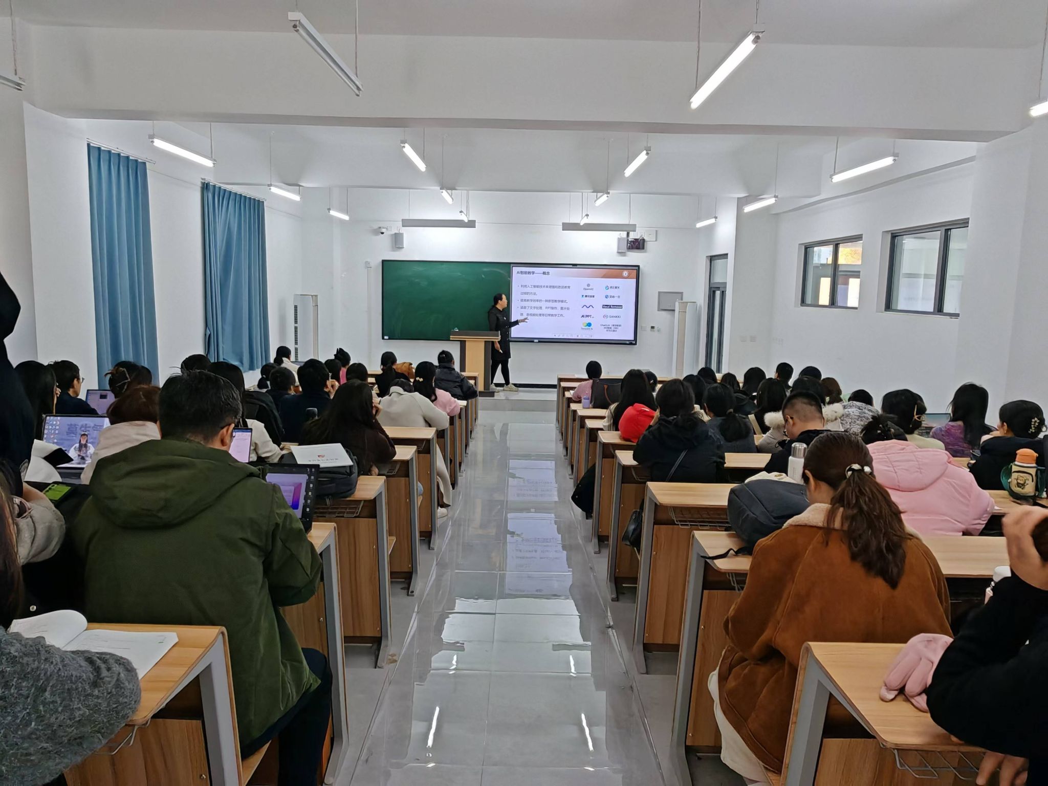 同时,参会教师们积极参与讨论,就如何将 AI 技术与现有课程体系融合、如何解决技术应用中的数据安全与隐私保护等问题展开深入交流。AI 工具的引入可以让教学资源更加丰富多样,而且能够打破时间与空间的限制,为学生创造更多元化的学习体验,这是教育发展的必然趋势。
