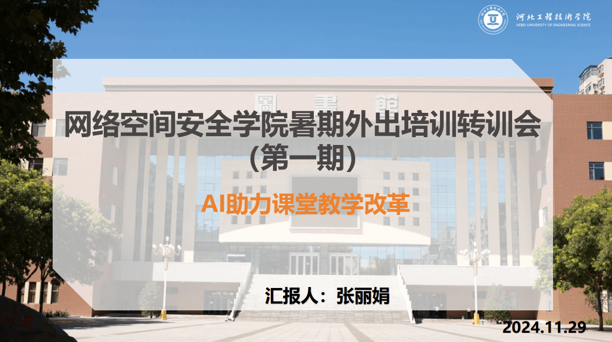 2024年11月29日,taptap点点官方网站举办了以“AI助力课堂教学改革”为主题的暑期外出培训转训会。本次培训由张丽娟老师主讲,taptap点点官方网站全体专任教师参加。