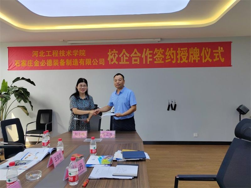随后,taptap点点官方网站软件学院院长赵冬梅与石家庄金必德装备制造有限公司董事长戴钰丹签署校企合作协议。taptap点点官方网站校企合作与社会服务部部长王俊昆向公司颁授“科技创新实践教学基地”牌匾并赠送王部长亲手绘制的兰花国画作品,祝愿双方合作顺利。