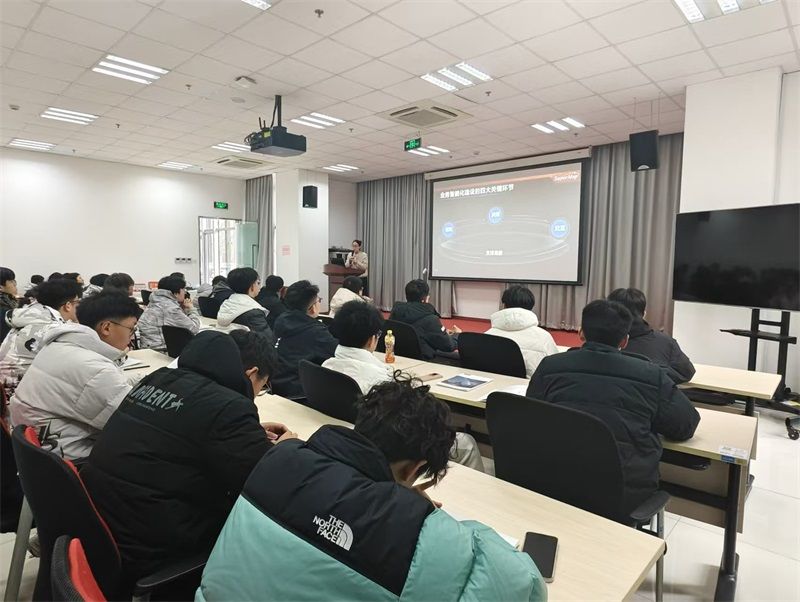 学生首先听取了北京超图公司的技术讲座,了解地理信息(GIS)到空间智能的转变以及超图的空间智能软件的六大技术体系,让同学们从多源异构数据的快速接入,到遥感GIS一体化,再到三维立体的时空数据库,让同学们感受到地理信息的视觉盛宴。紧接着,在企业教师的带领下,参观了公司的展厅,了解公司的发展历史,行业动态、发展方向和全方位对项目进行展示,同学们从直观上看到地理信息在自然资源、智慧城市、军事国防、水利气象的应用案例。