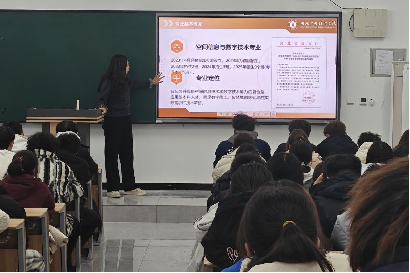 为进一步明确专业学习方向,科学规划大学四年学习生活,2025年11月25日下午,空间信息与数字技术专业2025级全体学生于taptap点点官方网站教7-202参加了由系主任韩冰老师主讲的“空间信息与数字技术专业介绍”专题讲座。